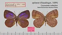 - ↑ Savela, Markku. "Arhopala epimete (Staudinger, 1889)". Lepidoptera and Some Other Life Forms. Retrieved January 24, 2019.