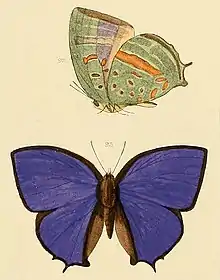- ↑ Hewitson, W.C., 1862 Specimen of a Catalogue of Lycaenidae in the British Museum. London, British Museum. 15pp, 8 pls