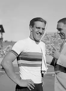 Arie Gerrit van Vliet (18 March 1916 – 9 July 2001) was a Dutch sprint cyclist. Between 1934 and 1957, he won 13 medals at world championships, including four gold medals, and set several world records in sprint events, despite the interruption by World War II.[1] He also won a gold medal in 1000 m time trial and a silver medal in the individual sprint at the 1936 Summer Olympics in Berlin. His Olympic sprint race was obstructed by the winner, German cyclist Toni Merkens, who was however not disqualified, but merely fined for 100 German marks.[2]