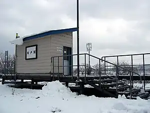 The station has a single ground-level side platform serving a single bidirectional track. There is no station building, but only a small rain shelter for passengers on the platform. The station is unattended.