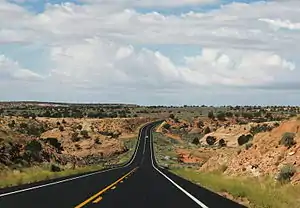 SR 98 begins at an intersection with US 89 just south of the Glen Canyon Dam along the Colorado River. It runs along the southern portion of the city of Page and turns southeast to the Navajo Nation. It enters the town of Kaibito in the reservation, but otherwise the stretch through the Native American reservation is mostly devoid of settlements. Following Indian Route 22, SR 98 intersects Indian Route 221 just north of its eastern terminus at US 160, the Navajo Trail.[3]