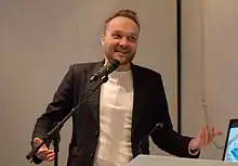 Arjen Henrik Lubach (Dutch pronunciation: [ˈɑrjən ˈɦɛnrɪk ˈlybɑx]; born 22 October 1979) is a Dutch comedian, author, music producer and television presenter. Between 2014 and 2021 he was the host of the weekly news satire television show Zondag met Lubach. As of 21 February 2022, he is the host of a new show on NPO 1, De Avondshow met Arjen Lubach.
