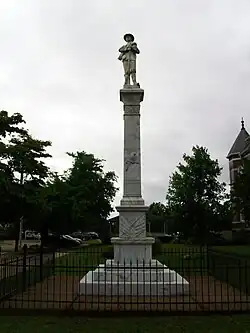 The Arkadelphia Confederate Monument is located on the grounds of the Clark County Courthouse in Arkadelphia, Arkansas. The sculpture, which depicts a Confederate Army soldier, was carved from Italian marble, and is mounted on a base of Georgia marble. It was designed and executed by R. P. Phillips in 1911, with funding from the local chapter of the United Daughters of the Confederacy.[2]