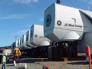 - ↑ Renewable Energy World (25 August 2003). "GE Wind's 3.6 MW Turbine Heads Offshore". Retrieved 3 April 2023.