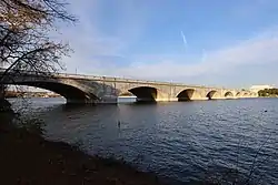The bridge's northeastern approaches frame, in part, the Lincoln Memorial, while the bridge's southwestern landing is on Columbia Island. The northeastern end of the bridge marks the western edge of the National Mall. The southwestern end connects with Memorial Drive, which crosses the Boundary Channel Bridge into Virginia and travels to Arlington National Cemetery in Arlington County.[2][70]
