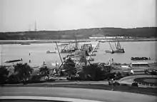 Major work occurred again in 1951. The granite blocks on the roadway surface were removed, and the bridged replaced with asphalt (a safer material) in a $207,000 repaving project.[76] The work began on July 16, 1951. Several of the bridge's six lanes were closed during the work week, and the entire bridge closed to traffic on weekends for four weeks in a row. The Corson and Gruman Co. performed the work.[77] Minor repaving occurred again in July 1957.[78]