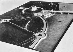 Although Congress did not formally adopt the McMillan Plan,[31] it began to implement it piecemeal over the next several years.[32] In 1910, Congress enacted legislation establishing the United States Commission of Fine Arts, a body of federally-appointed architects, landscape architects, and others who began to formally push for construction of the bridge envisioned by the McMillan Plan.[32] On March 4, 1913, Congress enacted the Public Buildings Act which, among other things, created and funded an Arlington Memorial Bridge Commission whose purpose was to settle on a design for the bridge and report back to Congress. Its members included the President of the United States, President of the Senate, Speaker of the House of Representatives, and the chairs of the committees on public grounds and buildings of the House and Senate (or their designees). But Congress appropriated no money for the commission's operation due to the onset of World War I, and it remained inactive.[33]