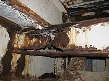 In February 2013, the FHWA launched a major inspection of the bridge's deck.[89] In April, National Park Service transportation division head Charles N. Borders II declared, "The bridge ... is really at the end of, and beyond, its life cycle".[lower-alpha 5][88] The inspection was performed on April 24, 2013, by the Federal Lands Bridge Office, an arm of the FHWA.[90] In its post-inspection report, the FHWA declared the bridge to be "in poor condition overall due to continuing problems related to corrosion of the steel in the bascule span, deterioration of the concrete in the arch spans, and deterioration of the sidewalks and wearing surface."[90] Among the problems noted in the report: moderate amounts of rusting were found on all the bridge's load-bearing beams, there were moderate to widespread cracks in the reinforced concrete arch spans, metal flakes (or "spalls") were coming off the steel beams on the road deck's underside, and the drainage system was clogged in many places by debris or rust.[90]