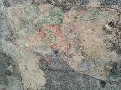 Armamalai cave is a natural cave which was converted to a Jain temple in 8th century AD. The cave contains 8th century Jain paintings, petroglyphs, rock art[4] and the remains of Jain saints.[1] The mural paintings are on the roof and walls of the cave.[1] The paintings were created by applying colours on the thin lime surface and over the thick mud surface.[4] These paintings were made by the Jain monks who stayed in the cave during the period when their religion was flourishing in the ancient Tamil country. The paintings in the cave are applied by two techniques, Fresco and Tempera.[5] They are similar to the paintings of Sittanavasal Cave,[1][6] another ancient Jain cave in Tamil Nadu[4] and Bagh Caves, an ancient Buddhist cave in Madhya Pradesh.[7] The paintings in the cave are thought to be medieval cave paintings in India.[5]