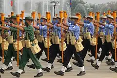 Armed Forces Day (Burmese: တပ်မတော်နေ့), formerly known as Resistance Day (Burmese: တော်လှန်ရေးနေ့), is the professional holiday of the Tatmadaw (lit. 'Armed Forces'), celebrated annually on 27 March. It commemorates the start of Burmese Army's resistance to Japanese occupation in 1945.[1] The holiday has been referred to as Anti-Fascist-Resistance Day by participants in the 2021 Myanmar protests.[2]