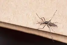 Armigeres is a genus of mosquito belonging to the family Culicidae.[1] Certain species of Armigeres have the ability to raise their hindlegs and create an egg raft, in which they transport eggs and carefully deposit those eggs onto the water's surface.[2]