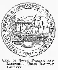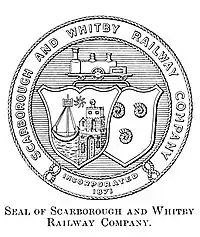 Scarborough and Whitby Railway The seal of Scarborough - A ship, a watchtower and a star.[39] |