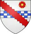Or a fess chequy argent and azure, a bend engrailed gules brochant in chief a rose of the same.[3] |