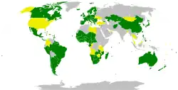 Opposition to the ATT can be broken down into state opposition and civil society opposition. Over thirty states have objected to various parts of the ATT during negotiations, the majority of which held strong concerns about the implications for national sovereignty.[32] From a civil society point of view, groups concerned about national sovereignty or individual rights to armed defense have been negative of the ATT. While not fundamentally opposed to an ATT, these groups are keenly sensitive to ensuring an ATT does not undermine national constitutional protections and individual rights. The most vocal and organized civil society groups opposing aspects of the ATT originated from the United States. These groups include the National Rifle Association of America (NRA),[33] the National Shooting Sports Foundation,[34] the Second Amendment Foundation,[35] and The Heritage Foundation.[36] The NRA and the Gun Owners of America say that the treaty is an attempt to circumvent the Second Amendment and similar guarantees in state constitutions in order to impose domestic gun regulations.[37]