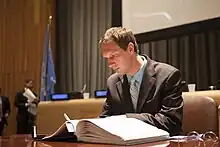 On 18 December 2006, UK Ambassador for Multilateral Arms Control and Disarmament John Duncan formally introduced resolution 61/89, which requested that the UN Secretary-General seek the views of UN member states on the feasibility, scope, and draft parameters for a "comprehensive, legally binding instrument establishing common international standards for the import, export and transfer of conventional arms", and submit a report on the subject to the General Assembly. 94 states submitted their views, which are contained in the 2007 report A/62/278.[13] Duncan was speaking on behalf of the co-authors (Argentina, Australia, Costa Rica, Finland, France, Japan, and Kenya). On behalf of the European Union, Finland highlighted the support for the effort, saying: "everyday, everywhere, people are affected by the side effects of irresponsible arms transfers ... As there is currently no comprehensive internationally binding instrument available to provide an agreed regulatory framework for this activity, the EU welcomes the growing support, in all parts of the world, for an ATT."[14] 94 States submitted their views, which are contained in the 2007 report A/62/278.[13]