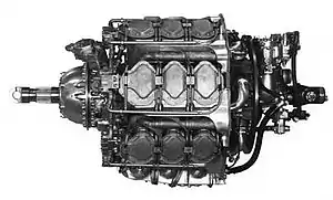 A projected increased capacity variant known as the Boarhound was planned but never built,[4] and a related much larger design, the Wolfhound, existed on paper only. The latter engine featured six banks of four cylinders, a displacement of around 61 litres (3,733 cu in) and a projected takeoff power rating of 2,600–2,800 horsepower (1,900–2,100 kW).[4]