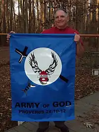 ![]() Army of God spokesman Donald Spitz holds Army of God banner. | |
