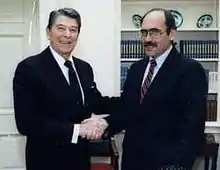 ![]() Raphel (right) pictured with U.S. President Ronald Reagan in 1987. | |