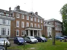 The Arnos Grove mansion was also sold in 1928 to the North Metropolitan Electricity Supply Company, becoming known as Northmet House.[11] The mansion was subsequently enlarged, with an extension to the south in 1929 followed by one at the north end of the house in 1935, resulting in loss of the portico facing Southgate Green,[12] and encased in red brick. The house was sold to Legal & General in 1975 and renamed Southgate House[12] (not to be confused with Southgate House). In 1997-8 the bulk of the property was converted into a residential care home called Southgate Beaumont[7] with the southern part developed into luxury apartments.[12]