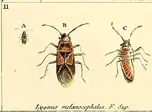 - ↑ Dellapé, Pablo M.; Henry, Thomas J. (2017). "Subspecies Arocatus melanocephalus melanocephalus (Fabricius, 1798)". Lygaeoidea Species File. 5.0. Retrieved 6 December 2017.