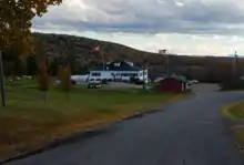 The Aroostook Valley Country Club is a golf course which straddles the Canada–US border, between the U.S. state of Maine and the Canadian province of New Brunswick. The club, located near Southern Victoria, New Brunswick and Fort Fairfield, Maine, has its course (except part of the tee area for the ninth hole, and possibly part of a sand trap on the first hole) and clubhouse on the Canadian side of the border and its parking lot and pro shop on the American side.[1] Although the course is located entirely on one side of the border, three holes are close enough to the border that crooked shots enter the United States.[2] The club was founded in 1929; its position on the border allowed American golfers to bypass Prohibition without passing through customs.[3] Current club membership is roughly half Canadian and half American.[4]