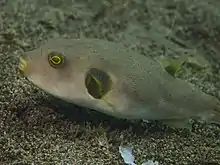 Arothron immaculatus, the immaculate puffer or yellow-eyed puffer, is a pale greyish to brownish pufferfish from the Indo-West Pacific. It is a species of marine fish in the family Tetraodontidae.
