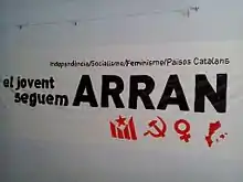 Arran[3] (Catalan for "level with") is the youth organization of the Catalan Pro-Independence Left, result of the merger between Maulets and CAJEI and local groups (such as the Youth Assemblies of Terrassa, Sant Sadurní or Horta, a process which began in 2008 and concluded in 2012.