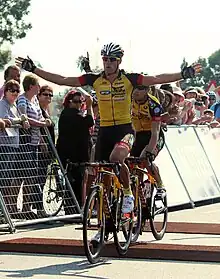Arran Brown (born 24 March 1985 in Johannesburg) is a South African professional road cyclist, riding for Team Cycle Fit - RoadCover.[1] Brown started cycling at the age of 16 and joined his first professional team at the age of 20. In 2007 he won his first major race, the South African National U/23 Time Trial Championships. In the same year he also placed third in the South African National U/23 Road Race Championships. 2009 was another major year for Brown as he became South Africa's first "Triple Crown" winner, winning the Cape Argus Cycle Tour, the MTN Amashovashova Classic and the Momentum 94.7 Cycle Challenge.[2]