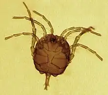 - ↑ Pepato, A.R.; Klimov, P.B. (2015). "Origin and higher-level diversification of acariform mites--evidence from nuclear ribosomal genes, extensive taxon sampling, and secondary structure alignment". BMC Evolutionary Biology. BioMed Central. 15 (1): 178. Bibcode:2015BMCEE..15..178P. doi:10.1186/s12862-015-0458-2. PMC 4557820. PMID 26330076.