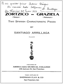 Music by Santiago Arrillaga (1912) published by Arrillaga Musical College