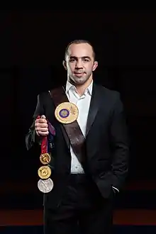 Arsen Julfalakyan (Armenian: Արսեն Ջուլֆալակյան, born 8 May 1987)[2] is an Armenian Greco-Roman style wrestler, Olympic silver medalist, World and European Champion, World Cup winner and three-time Olympian.