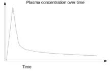 An example of an arterial input function showing the concentration of tracer in blood plasma over time.