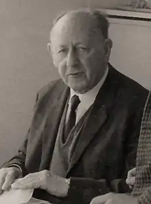 Influenced by the pan European CIAM (Congrès Internationaux d'Architecture Moderne), the MARS (Modern Architectural Research) Group were interested in applying the ideas of the modernist movement in Britain, most notably in a post war plan for London. As chair of the plan's governing committee at MARS, Arthur Korn worked with what was described as a 'small and devoted' group including architects Arthur Ling and Maxwell Fry, the latter who worked as secretary, and fellow Jewish emigre, engineer Felix Samuely.[8] Korn is described as having been 'the main spring of the enterprise' and as providing an 'infectious enthusiasm' that drove the project forward.[8][9] Influenced by the Soviet urbanist Milyutin, the plan essentially conceived the centre of the city remaining much the same but with a series of linear forms or tongues extending from the Thames, described as like a herring bone, composed of social units and based around the rail network.[7][10] Habitation in each social unit was to consist mainly of flats and owed much to Le Corbusier's notion of the Unite d'Habitation.[10] Described as 'unworkable' by Dennis Sharp, in his 1971 essay on the plan, he concedes it 'was not a concrete scheme but a concept that would by its very nature produce interpretations'.[7] Marmaras and Sutcliffe argue the plan 'saw London almost entirely in terms of movement ...[being] presented primarily as a centre of exchange and communications'.[11] Moughtin and Shirley (1995) note that one of the aims of the plan was to promote public transport, where with railways integral to planning, the 'need for cars will be few'.[10][12] Korn's initial chairmanship of the plan was interrupted by his 18-month internship in the Isle of Man from 1939, on account of his German citizenship and perceived Communist sympathies, the period during which work on the plan fissled out.[8] On his release, in 1941, work recommenced, an exhibition of the plan was organised and a 'description and analysis' was published under the joint authorship of Arthur Korn and Felix Samuely in the Architectural Association journal in 1942.[8][11]
