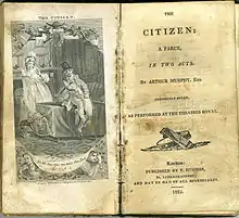 An example of Murphy's theatrical writings is The Citizen, a farce, first produced at Drury Lane in 1761. The play included Ann Elliot as Maria. Ann was Murphy's protege and mistress.[3][4]