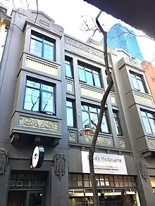 - ↑ "Bourke Street Firm Rebuilds". The Herald. No. 17, 677. Victoria, Australia. 10 January 1934. p. 17. Retrieved 19 August 2019 – via National Library of Australia.