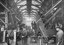 During the German occupation of the Netherlands, Frans den Hollander remained Director of Artillerie Inrichtingen, but he had contact with the Dutch government in exile. The Nazi's demanded immediate reopening of the factories following the surrender of the Netherlands, but Den Hollander and his superiors, Dutch Commander-in-chief Henri Winkelman and Secretary-General Cornelis Ringeling refused this initially, and succeeded in delaying the resumption of production for about a month. On June 20, 1940 production resumed. The Nazis kept the plants working during the war, but the workforce fell sharply. The company also tried to make as many civilian products as possible. This could be because the machine factory was sold in 1941. The Delft factory was also dismantled in secret in 1941. In 1944, when the Allies began to advance through The Low Countries and through the Hunger Winter the Artillerie-Inrichtingen factories were closed.[1][2][3]