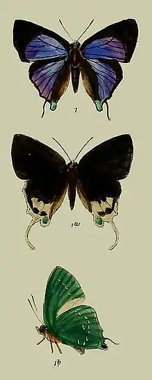 - ↑ Seitz, A., 1912-1927. Die Indo-Australien Tagfalter. Theclinae, Poritiinae, Hesperiidae. Grossschmetterlinge Erde 9: 799-1107, pls. 138-175.