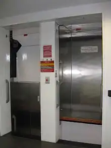 Circulation is through two ordinary lifts and a paternoster lift which, at 38 cars, is the largest of the few surviving in the United Kingdom.[7]