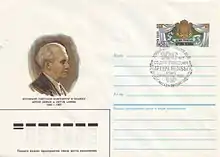 Soviet envelope with imprinted stamp, bearing a portrait of Artur Lemba, issued on his 100th birthday (24 September 1985). The envelope has been cancelled in Moscow on the first day of issue