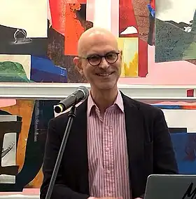 Arturo Herrera is a Venezuelan-born (1959), Berlin-based visual artist known for wide-ranging work that is rooted in the practice of collage.[1][2][3] His colorful, often rhythmic art intertwines bits of pop iconography, gestural marks and nonrepresentational shapes using pictorial strategies of fragmentation, repetition, effacement and dislocation.[4][5][6] The resulting imagery often balances between abstraction and figuration (often barely legible), detached from inherent narratives yet vaguely familiar.[7][8] Critics suggest that this ambiguity engages memory, fantasy and a viewer's unconscious private interpretive schemes, evoking a multiplicity of references and readings.[9][10][11] In 2020, Art in America writer Ara H. Merjian described Herrera's practice—which includes works on paper, paintings, reliefs, sculpture, public art and books—as "chameleonic as [it] is consistent," one that "breathes life into modernist collage, exploring the tensions between exactitude and spontaneity, placement and displacement."[1]