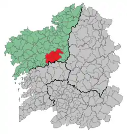 Arzúa is a comarca located in the autonomous community of Galician Province of A Coruña. It has an area of 81.3 km2 and as of 2019, it had a population of 16,241 inhabitants.