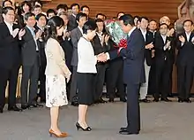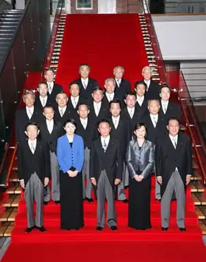 ![]() Prime Minister Tarō Asō (front row, centre) with the newly-elected cabinet inside the Kantei, 24 September 2008 | |