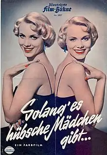 As Long as There Are Pretty Girls (German: Solang' es hübsche Mädchen gibt) is a 1955 West German musical comedy film directed by Arthur Maria Rabenalt and starring Georg Thomalla, Alice Kessler and Ellen Kessler.[1] [2] It was based on the play Okay Mama by Annemarie Artinger. It was shot at the Bavaria Studios and Carlton Studios in Munich. The film's sets were designed by the art directors Kurt Herlth and Robert Herlth.