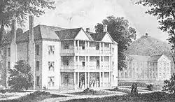 Between 1851 and 1855 the school became the property of the Holston Conference of the Methodist Church and its name was changed to the Holston Conference Female College.[3] It found a home in other buildings on what later became its permanent campus, a 7-acre (2.8 ha) grove almost in the heart of Asheville.[4] A scholarship program was created to increase attendance, which succeeded, but caused a financial problem. In the summer of 1855, Rev. Anson W. Cummings became president of the college and successfully offset the scholarship funding by increasing charges for the music and art departments. The school had nearly 200 students until the Civil War, when it was temporarily closed.[3]