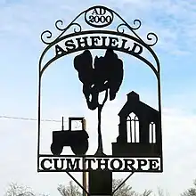The name "Ashfield cum Thorpe" (Ashfield with Thorpe) refers to the civil parish, which consists of the village of Ashfield and the nearby hamlet of Thorpe.