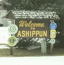 Ashippun is an unincorporated census-designated place located in the town of Ashippun, Dodge County, Wisconsin, United States. Ashippun is located on Wisconsin Highway 67 7 miles (11 km) south of Neosho. Ashippun has a post office with ZIP code 53003.[3] At the 2020 census, its population was 1,166,[4] more than triple the population of 333 in 2010.