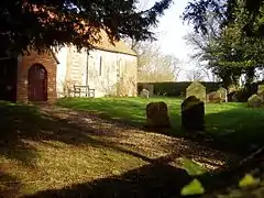 St James' Church, Ashmansworth, is believed to have been built around the middle of the 12th century, to which date the nave belongs. The chancel dates from the end of the same century. Windows have been inserted at various dates and the east wall was rebuilt in 1745.[5] Wall paintings, mainly discovered in the 1800s and early 1900s, depict the life of Jesus, and probably date from the 1200s to the 1600s.[6] The village church is dedicated to Saint James the Great. It is now a Grade I listed building.[7]