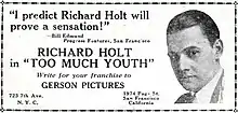 ![]() Dearholt in the advertisement for Too Much Youth (1925) under the name Richard Holt | |
