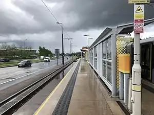Ashton Moss is a tram stop on the East Manchester Line, built as part of Phase 3b of the Manchester Metrolink. The station opened on 9 October 2013,[1] ahead of the originally-publicised schedule of the winter of 2013–14.[2] The stop has an island platform, and is located on Lord Sheldon Way near the Ashton Moss leisure complex and Snipe Retail Park on Ashton New Road.[3] The station is served by a 200 space Park + Ride car park, with electric vehicle parking facilities.