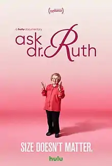 Ask Dr. Ruth is a 2019 documentary film directed by Ryan White, and produced by Jessica Hargrave, Christopher Leggett, Rafael Marmor, and Ryan White under the banner of Delirio Films, Neko Productions, and Tripod Media. The film follows German-American sex therapist Ruth Westheimer (Dr. Ruth) as she reflects on her life and career. The film's title derives from the name of Westheimer's syndicated 1987 late-night television series Ask Dr. Ruth.[2]